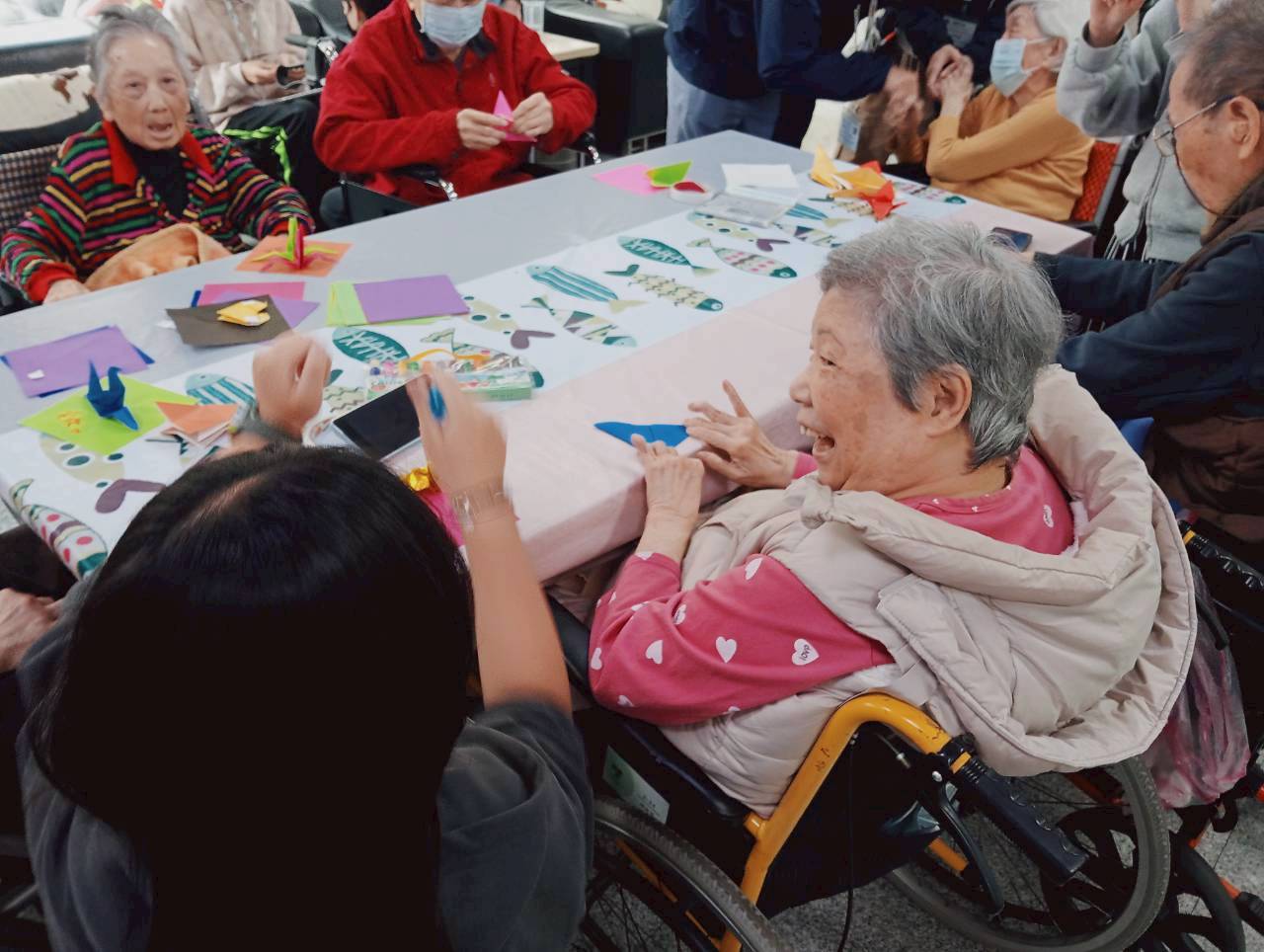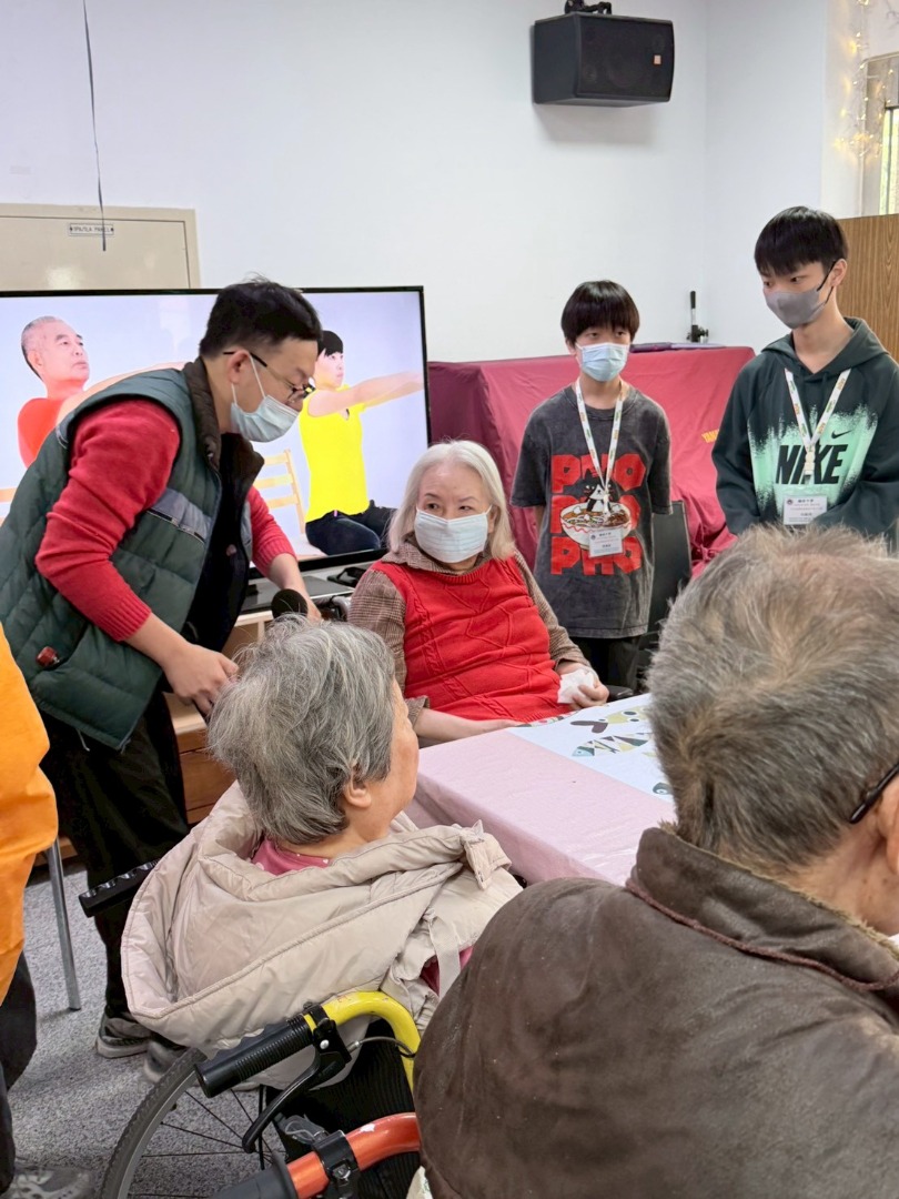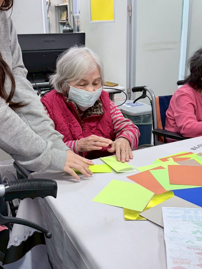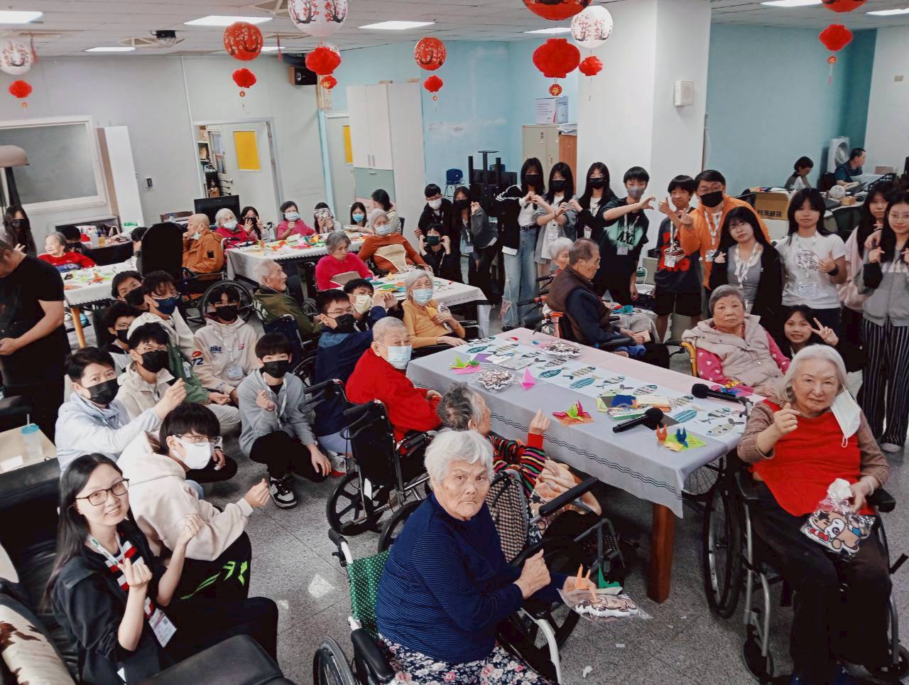 服務介紹 活動剪影 日常活動 1150326香港顯理中學 鄰舍守望 服務學習青銀團懷活動 1150326 10:00-11:30 香港顯理中學「鄰舍守望 服務學習」青銀關懷活動香港顯理中學(Henrietta Secondary School)自2023年起,在復活節假期前一週會舉辦「鄰舍守望」(Neighbor Watch)全方位學習活動,實踐「愛及全球,把握成長機會」的理念,培養學生服務他人與關愛社區的精神。今早有幸邀請該校師生來台帶來「鄰舍守望 台北桃園 服務學習計劃 5天團」 青銀關懷活動,為長輩的生活創造趣味。32位高中生和大他們至少一甲子的長輩們一見如故,特別是會廣東話的長輩聽到熟悉的口音倍感親切而潸然淚下。長輩跟著學生做操暖身,擴胸心花開。接著老師跟同學們帶長輩挑選心儀的色紙折紙鶴,折完後孩子把紙鶴固定在色紙上,用彩色筆寫上吉祥話,連同馬年賀歲抱枕小禮物,並和長輩合唱鄧麗君的名曲月亮代表我的心,祝福眼前萍水相逢的長輩們都能夠身體健康、每天快快樂樂的。最後社工抽空帶學生們回顧今天做了什麼事情,肯定他們在過程中真誠付出,愛人如己,陪伴長者獲得溫暖與慈愛支持,並說明台灣的長照,鼓勵他們和長輩互動時要微笑、眼神接觸和有耐心,平時可以多關心自己周遭的人事物,返家後成為微孝小天使。 返回